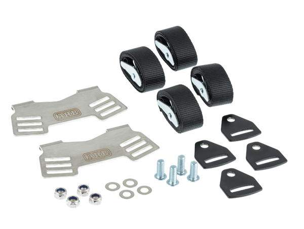 Cinghie di montaggio in acciaio inossidabile con marchio ARB in rilievo.