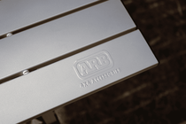 Il design del tavolo utilizza una lamella in alluminio di diametro pieno che fornisce una superficie resistente, oltre alla resistenza al calore per la preparazione della cottura. Le bretelle trasversali vengono utilizzate per fornire supporto aggiuntivo insieme a gambe in tubo quadrato per fornire robustezza non vista in tavoli simili.