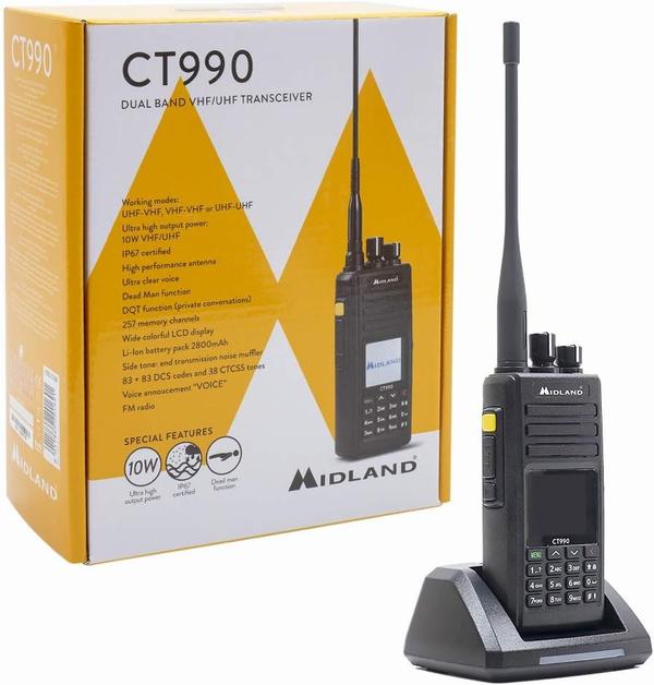 Il CT 990 è un VHF certificato IP67 che ne consente l’utilizzo in condizioni meteo estreme in quanto protetto da polvere ed acqua fino ad un metro di profondit per 30 minuti.