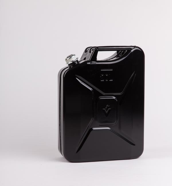 Tanica carburante 20 lt con tappo a vite in lamiera d'acciaio.